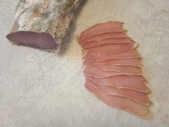 Ingrédients: viande de porc, sel – DLC: 60j date d’emballage